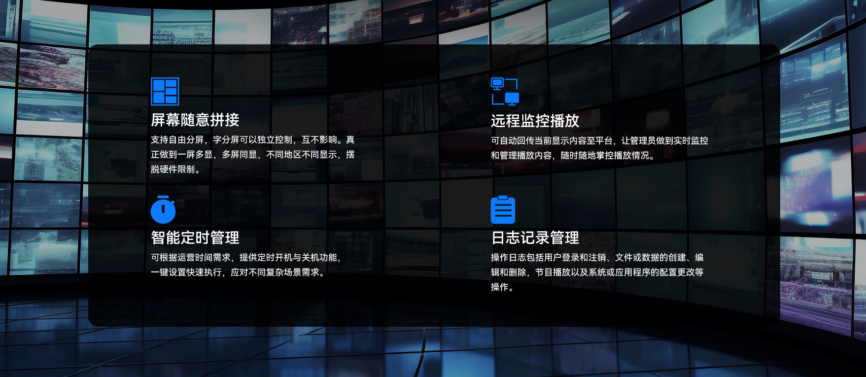 好博(中国)体育GDSM-ES智能零售管理系统可 实现多屏拼接/多屏分离自由选择,也可画中画显示,用户可根据场景自行灵活安排,更可以异形屏幕显示安排,让广告显示更加丰富多彩。同时,还可以轻松查看设备的基本信息,如连接状态、播放状态、播放到期时间,屏幕类型等;可对设备进行分组远程管理,远程设置定时开关机时间,控制设备音量,远程重启、远程升级,远程截屏查看实时画面等,实现屏幕智能管理。