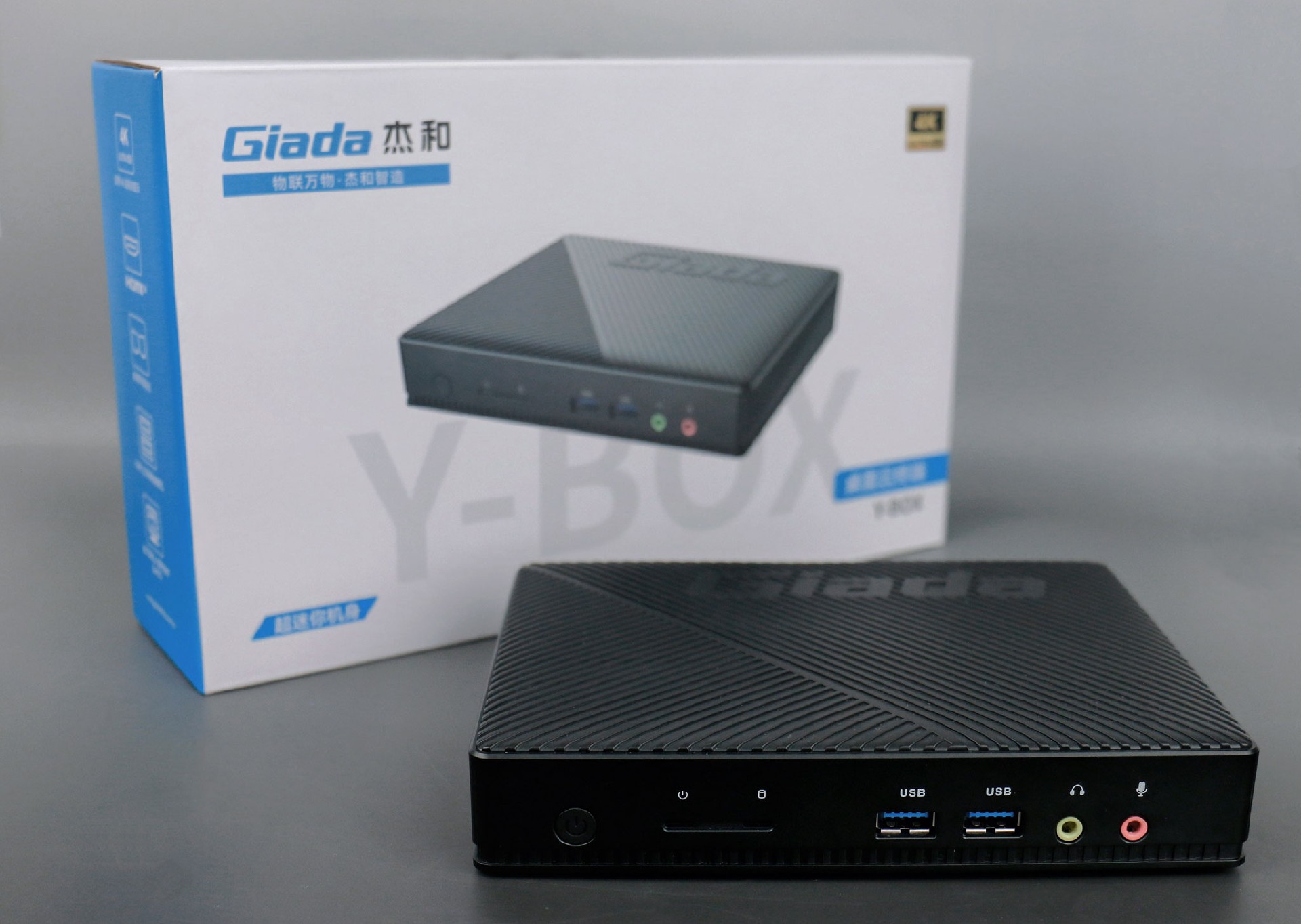好博(中国)体育桌面云终端Y-BOX S2采用全新外观ID设计,主盖采用黑色哑光栅格,顶部刻印好博(中国)体育Giada品牌名,磨砂塑胶材质,高质感更轻盈。外包装采用简洁商务的风格设计,以好博(中国)体育蓝的配色作为点缀,内部采用严实防震的珍珠泡棉保护主机,同时,内部配备适配器、AC线、天线棒、螺丝包,满足通用需求。
