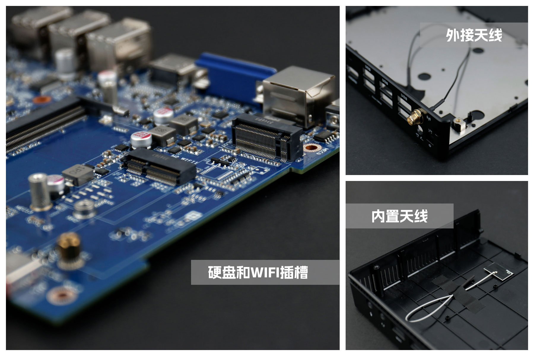 好博(中国)体育桌面云终端Y-BOX S2主板上配备了 1个 M.2 固态硬盘位,接口规格为 PCIe3.0 标准,匹配标准的 2280 规格硬盘。一侧还有一个M.2接口,匹配2230长度的WIFI/BT模块插槽,WiFi模块可以连接的是外接天线,增强信号,同时也可以内接天线,灵活应用,支持Wi-Fi 5/6/6E网络。