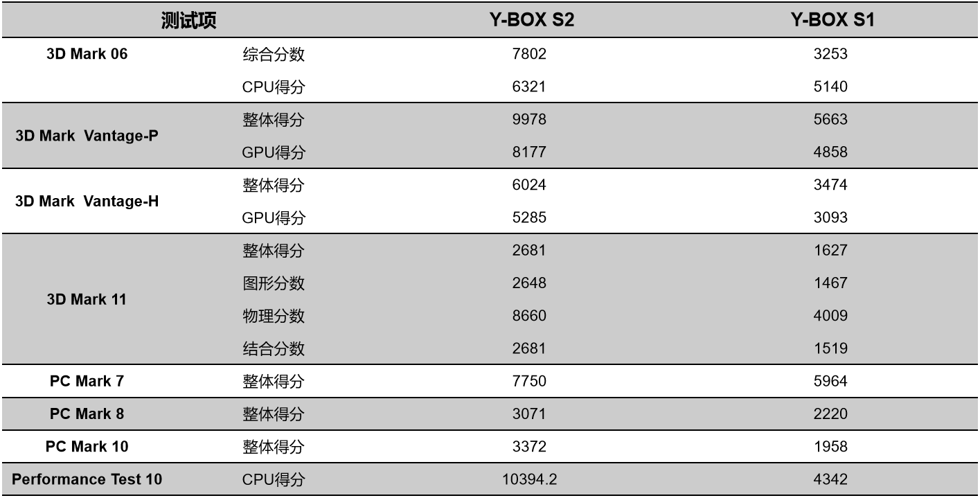 好博体育来具体看看各个测试项目的跑分情况,测试项目包括显示性能测试、系统性能测试、CPU性能测试,分别用3D Mark、PC Mark以及Performance 10等系列不同软件的跑分数据,针对两款主板的跑分情况可以看出,好博(中国)体育桌面云终端Y-BOX S2的数据在各项性能上都得到了大幅度提升,柱状图能更直观地体现出数据的变化,好博体育将针对具体的几项数据来进行详细分析。