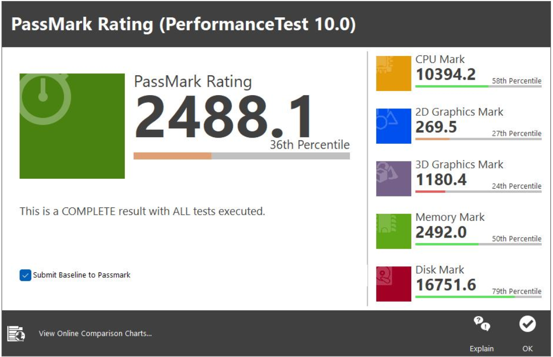 在本次测试中,CPU Mark得分10394.2,数据表明,这套配置确实可以很好地胜任对于日常高效运行的性能要求。