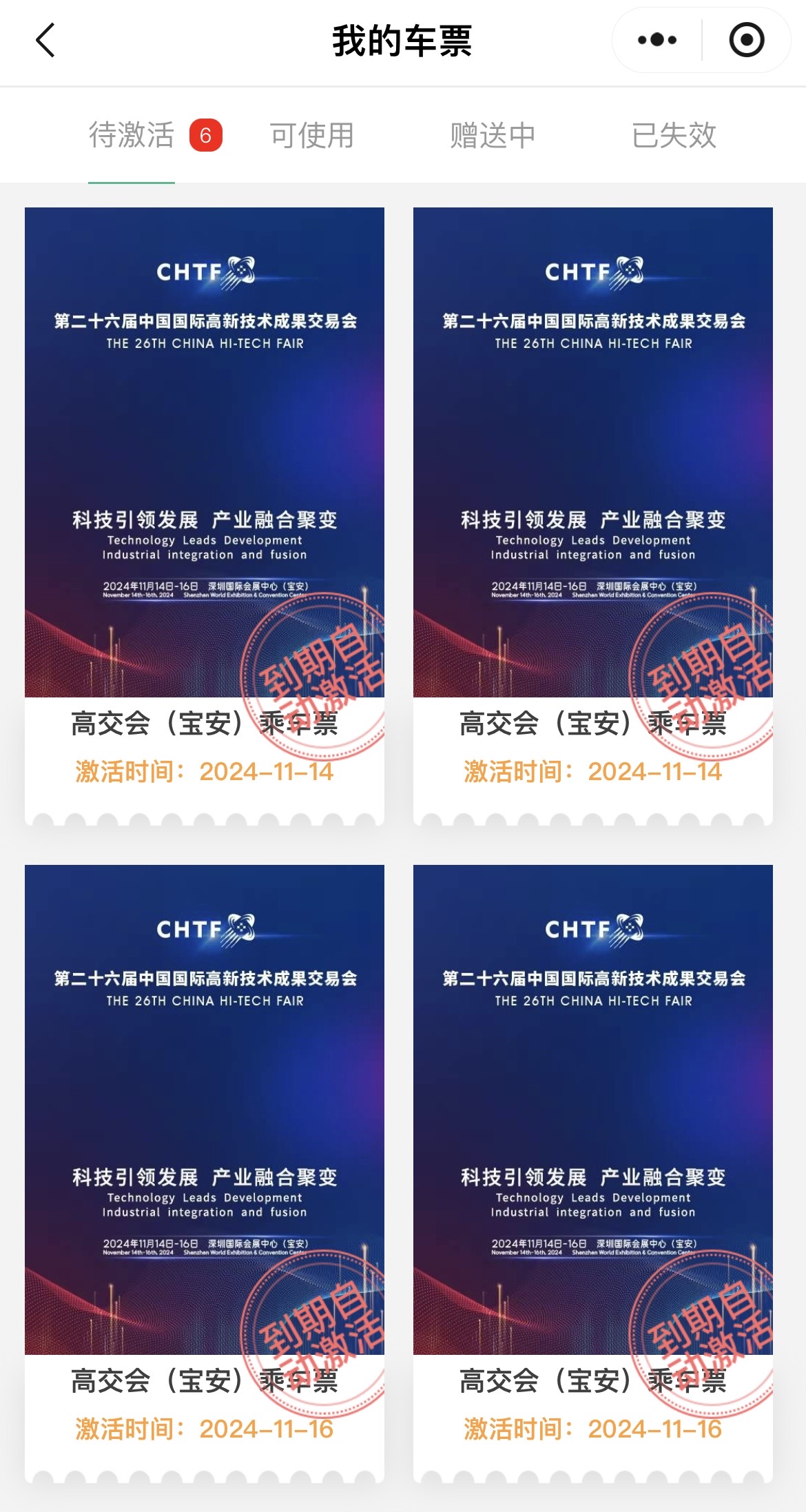 5、请用登记注册的手机号,登录深圳通APP或“深圳通+”小程序,用别的手机号将看不到展会乘车票。