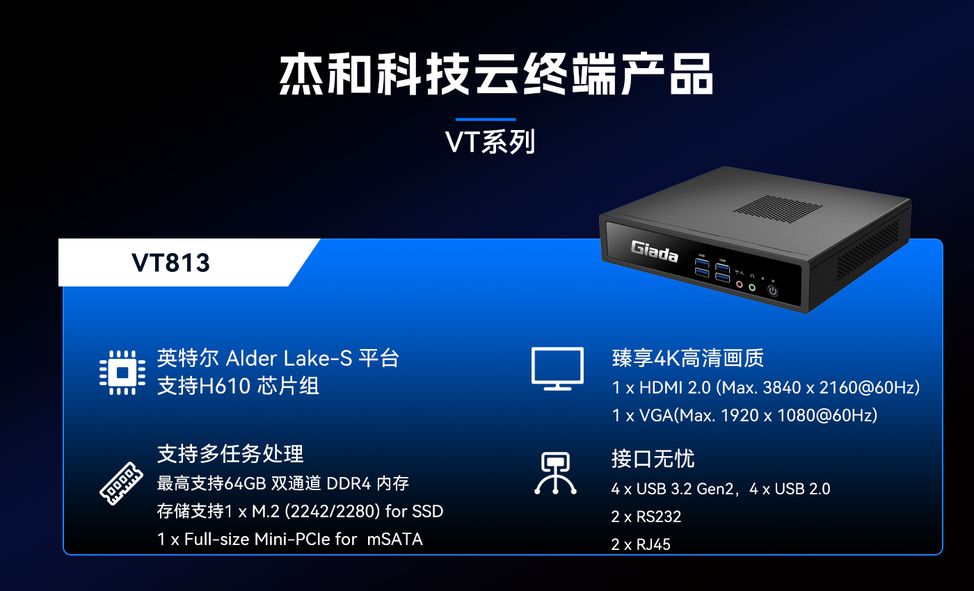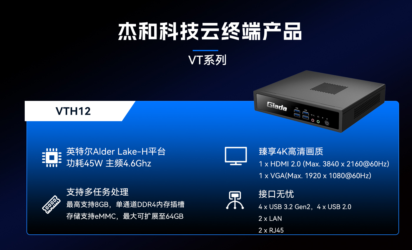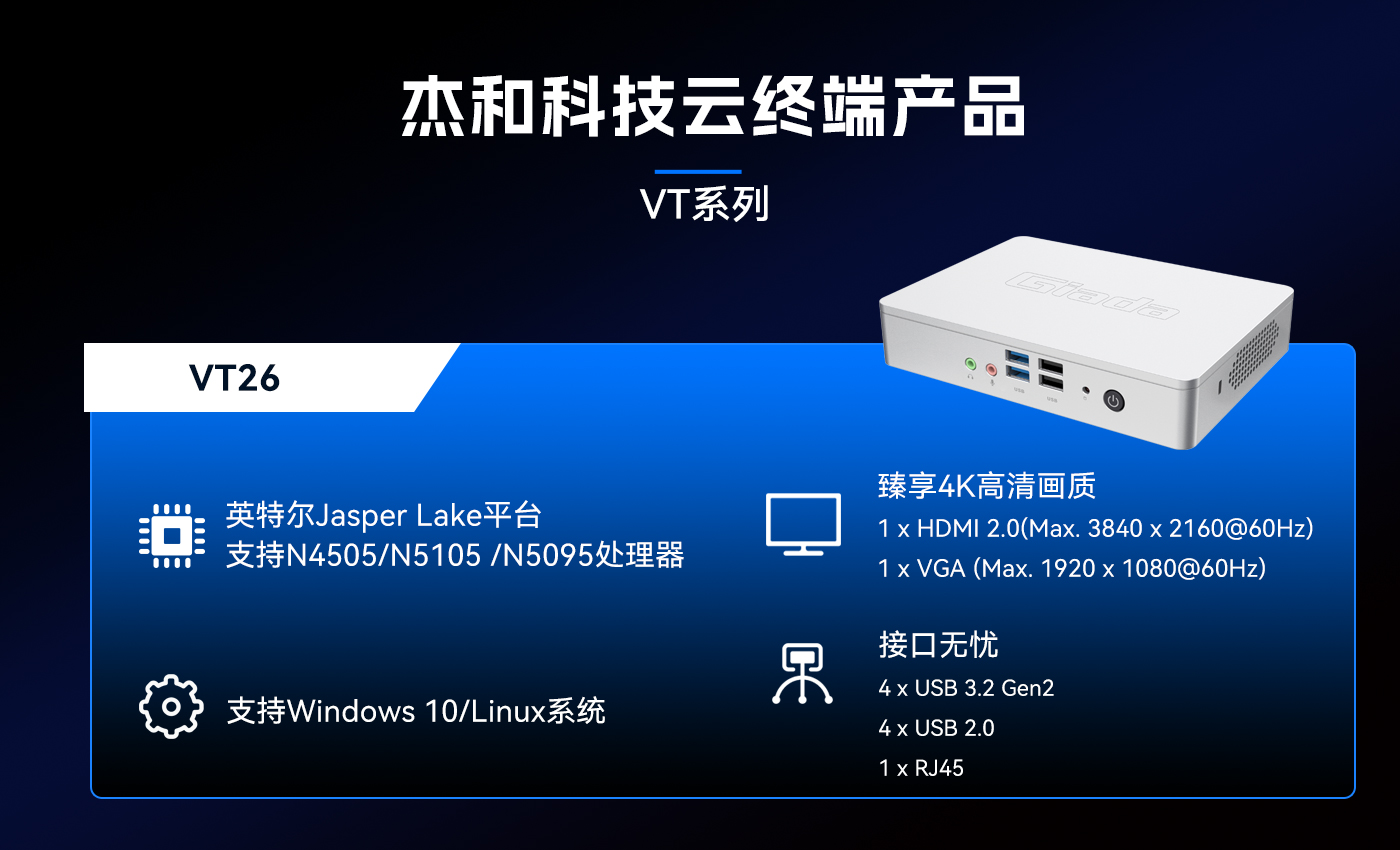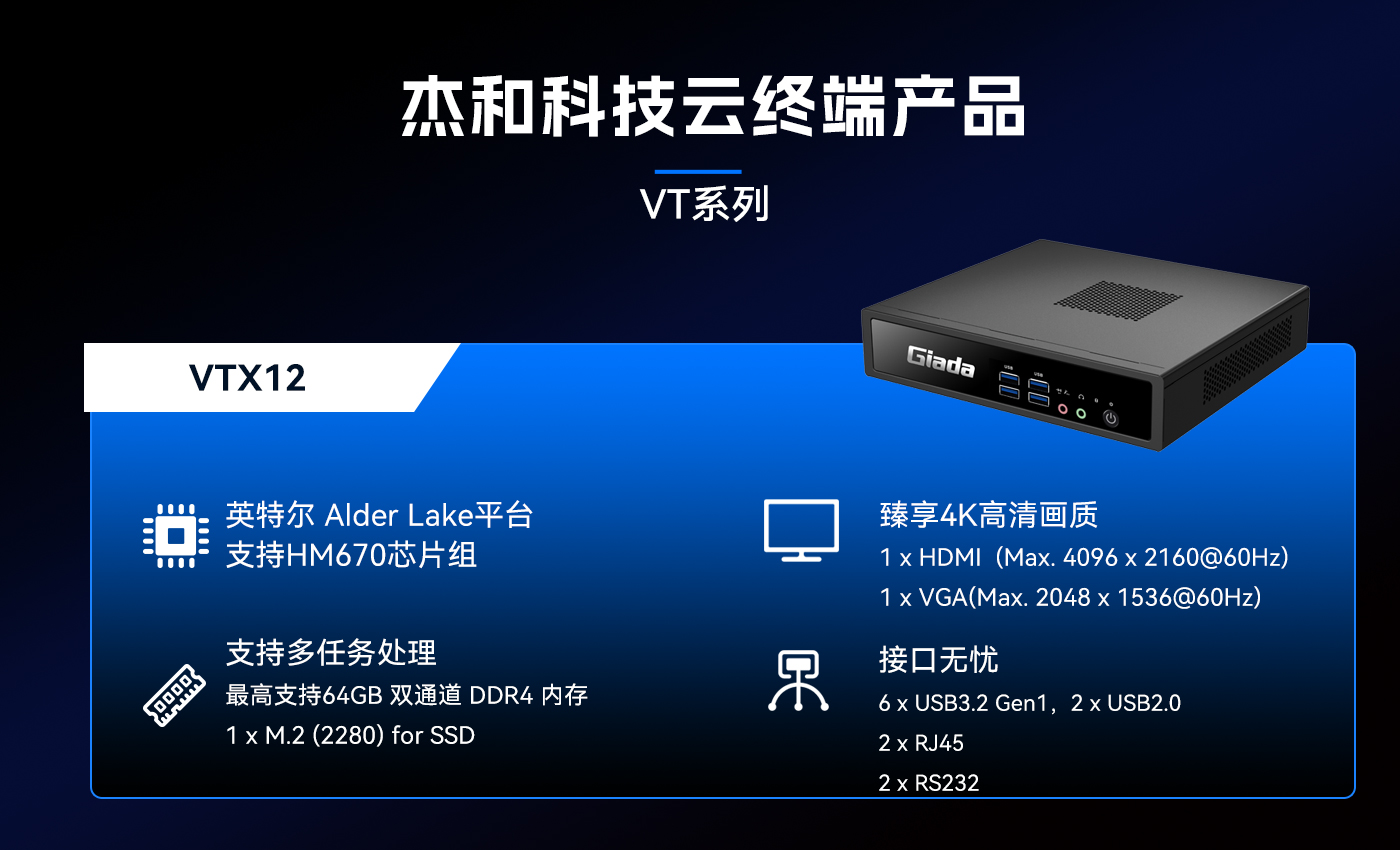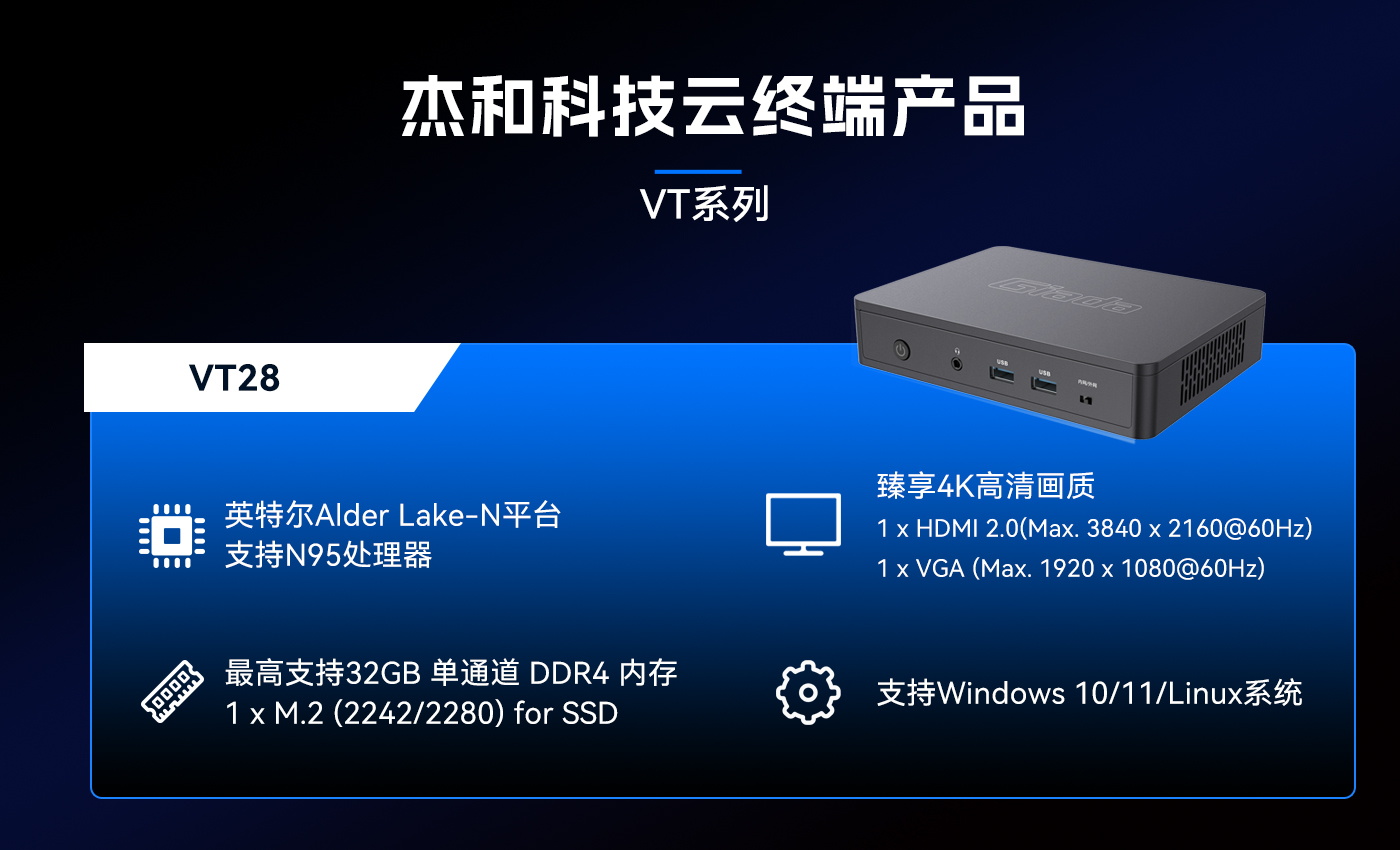 除此之外好博(中国)体育科技云终端VT系列产品线还提供多样化的硬件配置选择,涵盖多种处理器架构、内存容量、存储设备和接口类型,满足不同应用场景的个性化需求。