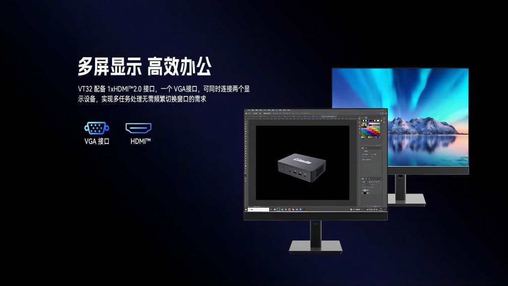 配备两个RJ45以太网接口,并有多个USB接口,包括USB3.2 Gen1和USB2.0,方便连接各种外设,满足多样化的办公需求;支持多显示屏输出,适配监控、多窗口办公等复杂场景。
