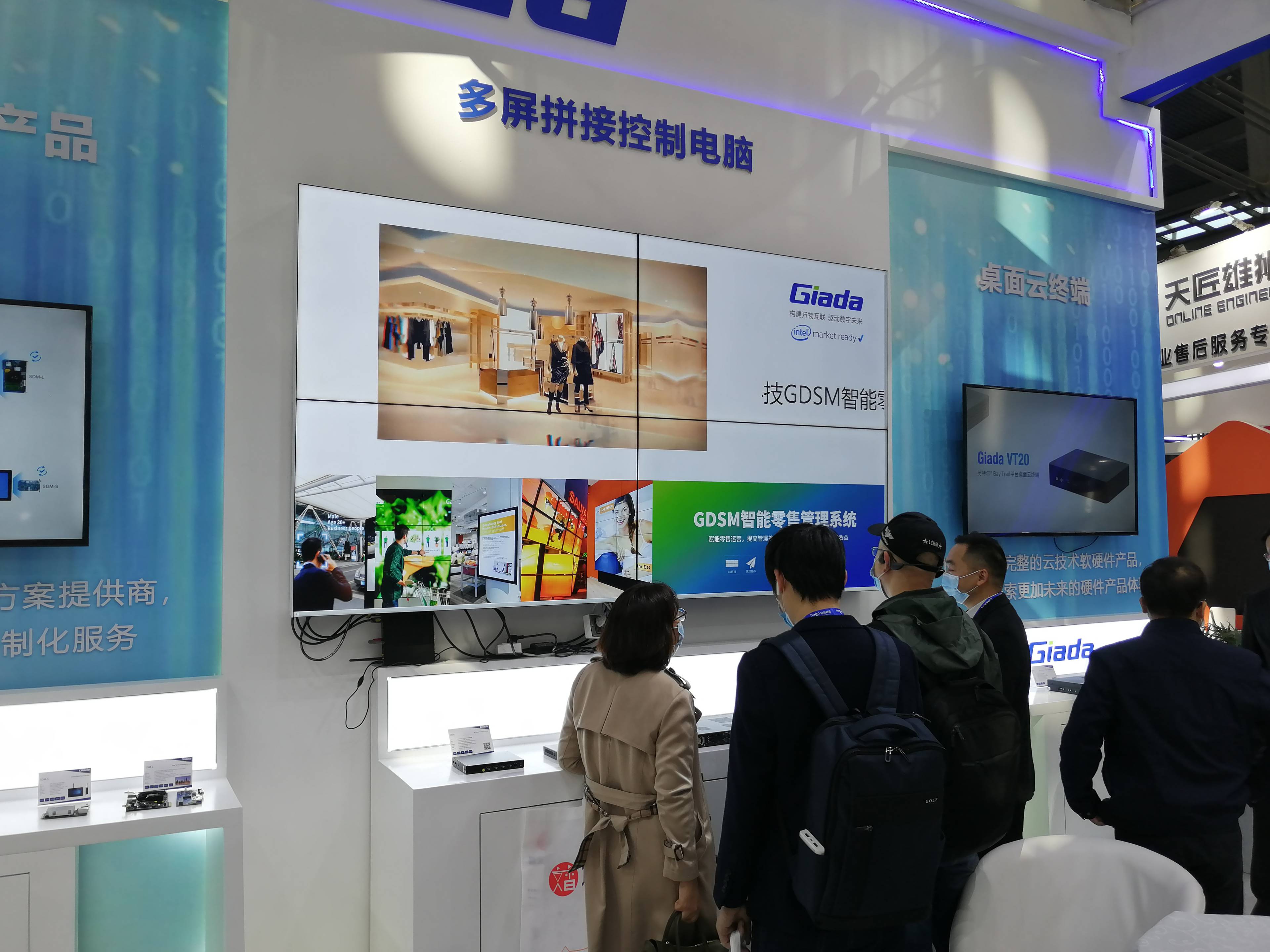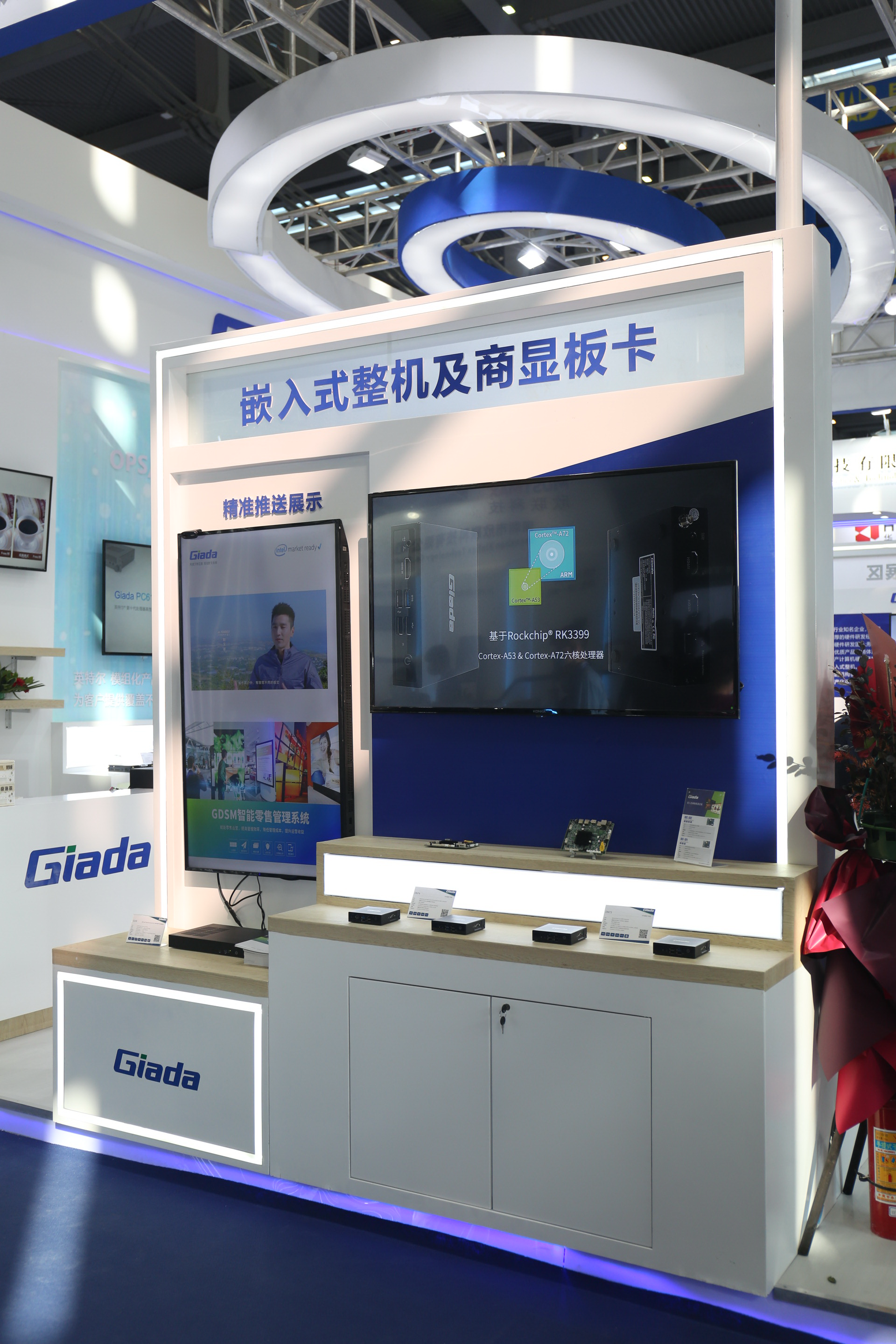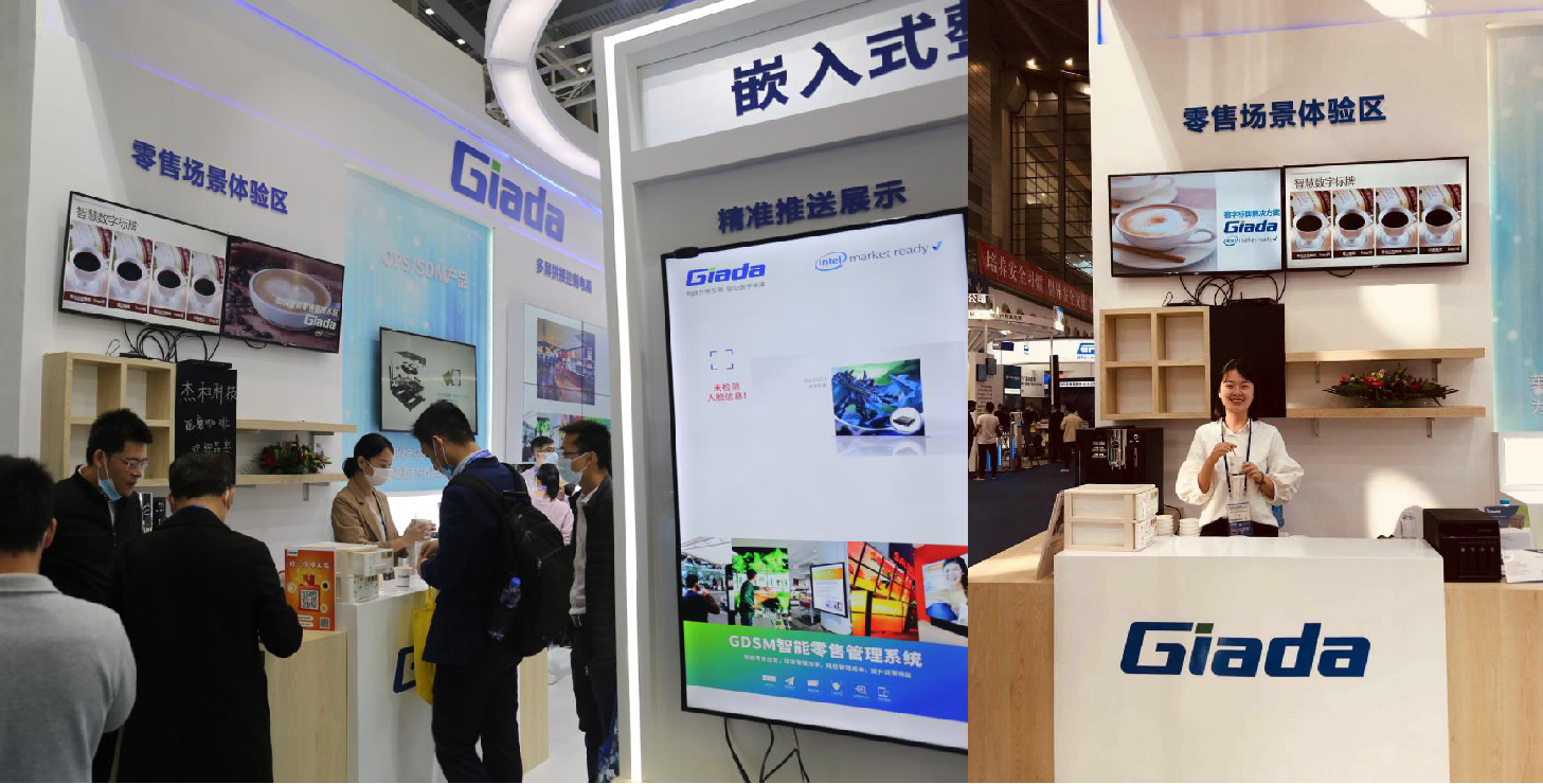 紧邻ARM架构商显产品集的精准推送展示区与零售门店模拟展区,共同组成了本届展会好博(中国)体育科技展位的一大精彩设计。场景展现了GDSM智能零售管理系统在零售门店场景下的展示效果,顶部的数字标牌由GDSM系统推送内容,模拟搭建了针对人流动线的广告精准推送形态。