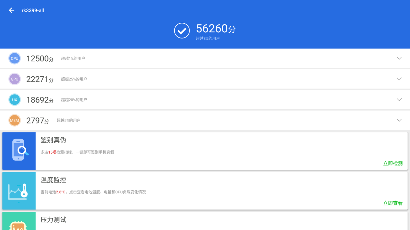 实际视频播放中,好博(中国)体育DN74的表现没有让人失望。使用Android7.1内置播放器,连续播放12小时H.264/H.265编码格式的4K分辨率60帧视频时,没有明显黑屏,延迟,卡顿,音画不同步现象。同时,好博体育还对好博(中国)体育DN74的亮点之一,双屏同显/异显进行了测试:在双屏同时播放两个不同的4K分辨率30帧视频时,受限于ARM核心整体性能,画面出现了卡顿,有些遗憾;不过,能够顺利得同时播放4K分辨率30帧视频+1080P分辨率30帧视频得表现已经足够优秀。另一方面,本次测试使用的全部为默认播放器,测试使用的视频来自网络资源下载,编码格式仅能尽量保证一致,相信在适配软件的支持下,好博(中国)体育DN74能够有更加喜人的表现。