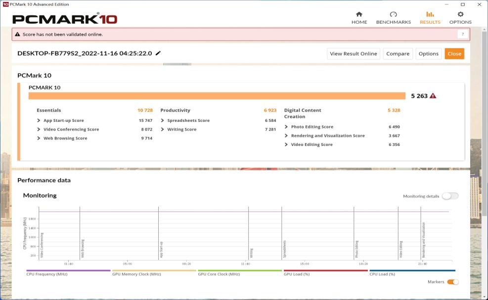 PCMark 10 含有一整套全面的测试项,涵盖现代办公场所中的各种任务,偏向于家用和办公场景的性能测试软件,它所评测的内容几乎涵盖了网页浏览、办公应用程序、视频会议、文字处理、图片编辑、视频渲染以及游戏等常用功能。通过实测,好博体育可以看出,综合得分综合得分为10728、生产力得分为6923,数字内容创作为5328,这些数据表明,好博体育同时运营十多个程序也都是不卡顿的,跑分数据符合预期。