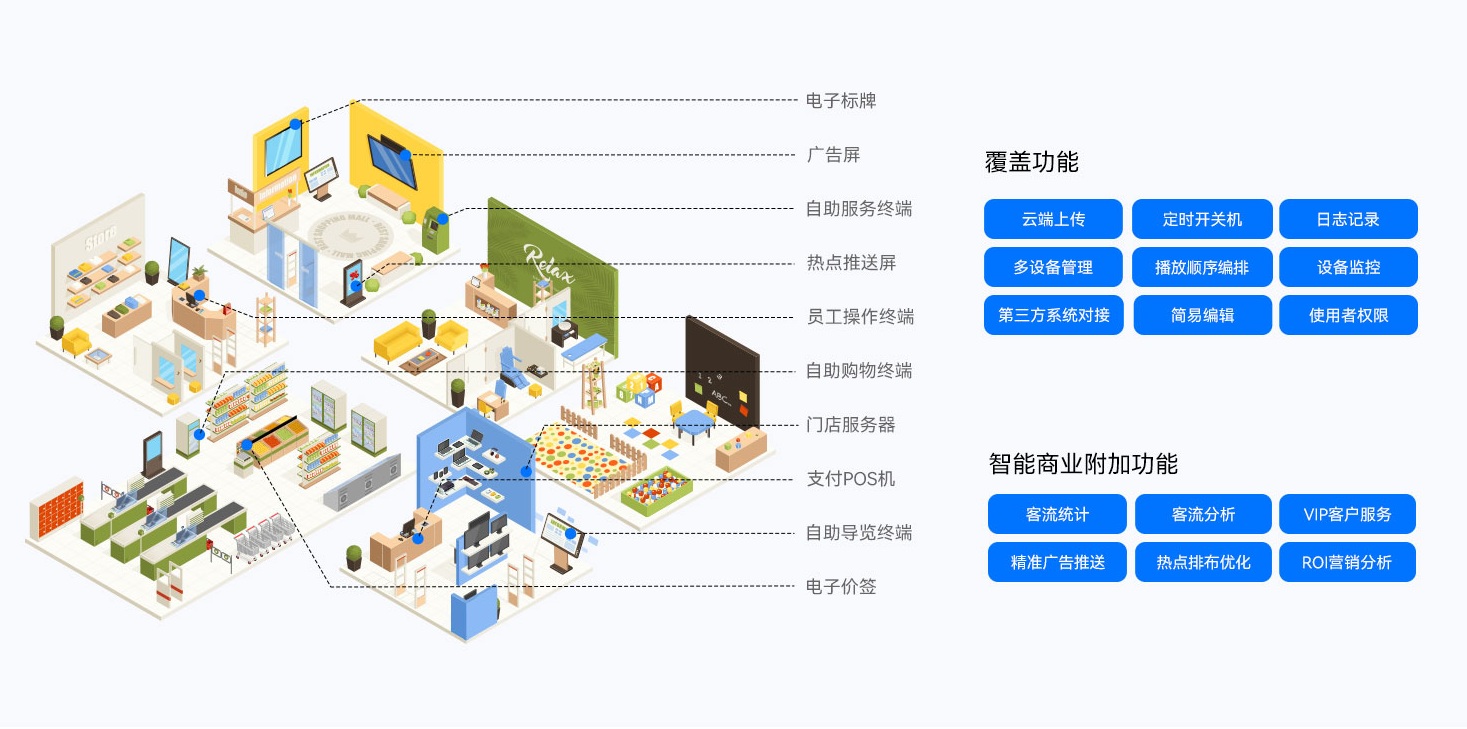 好博(中国)体育智慧零售解决方案实现了门店全流程全维度的数字化、智能化设备应用,嵌入式主板、嵌入式电脑等硬件设备是构成方案的重要组成部分,作为整个方案的基础支撑,为智慧零售提供计算、控制、决策能力。其中,配备数字标牌的广告机提供推广信息的数字化显示,不仅可以提升门店的视觉吸引,结合AI人工智能模块,还可实现精准推送;自助服务终端设备的应用,可以减少排队等待时间,简化下单、买单、支付等流程,节省人力、物力与时间;员工收银终端等可以提升收银流程效率,减少人为差错,使账务实现数字化管理等等。
