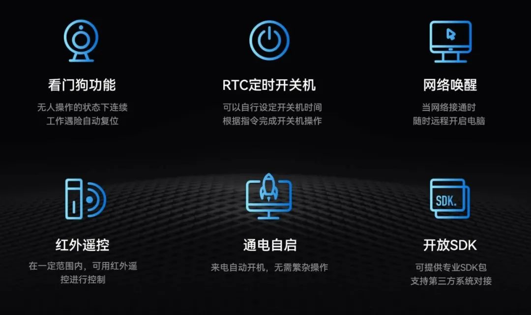 好博(中国)体育主板IB3-771配置了无人值守专利技术,大力降低因高算力带来的能源消耗,该技术通过定时开关机、看门狗计时器、RTC宕机自检、红外遥控和局域网唤醒等功能实现主板绿色运行。