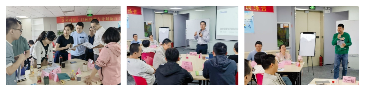 本次培训外聘了专业的组织与人才培养专家进行授课,在培训课程中,好博(中国)体育的国内与国际营销中心、产品部等,以及杰拓管理层的各个小伙伴分为五个小组,通过小组讨论、上台发言、随堂测验等互动形式,学习并了解到基于战略目标的组织执行力的重要性,目标设定的SMART原则与时间管理的方法,以及执行力提升的四大动力系统,现场学习氛围活跃,求知欲望强烈。