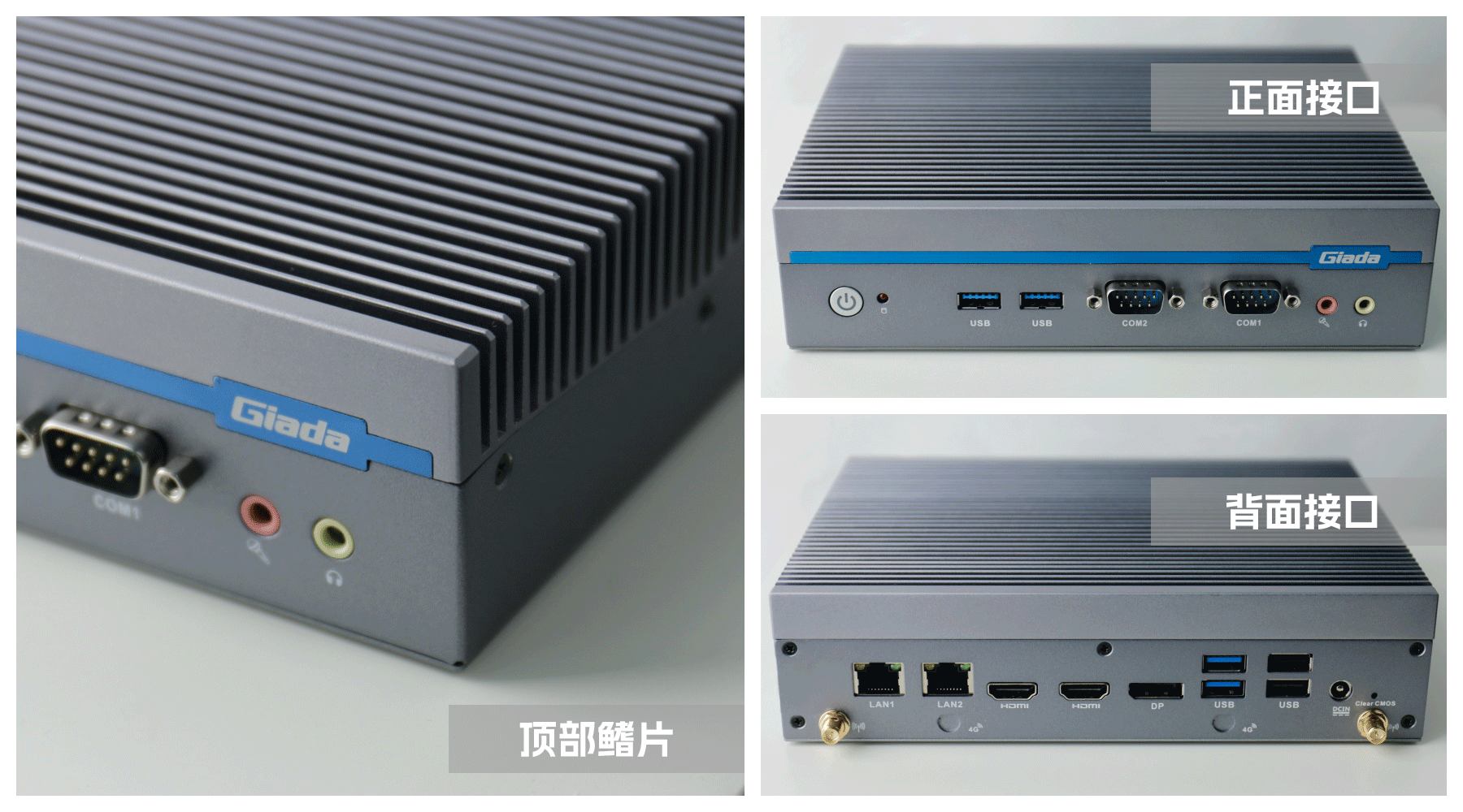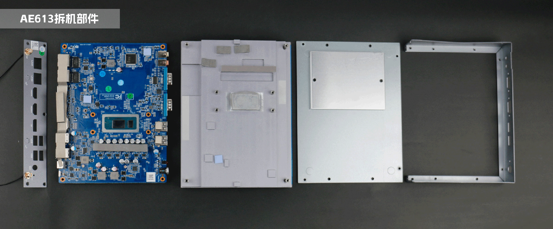 嵌入式整机AE613外包装采用环保材料设计,内部配备适配器、AC线、天线棒、螺丝包,满足通用需求,整机外观机壳顶面采用一体式铝板增高的鳍片散热设计,整机结构采用全铝设计保证散热与抗压性,通过好博(中国)体育特有无风扇静音散热设计使整体散热效果非常优秀,同时营造出极致安静的工作和使用环境,无噪音,更防尘。