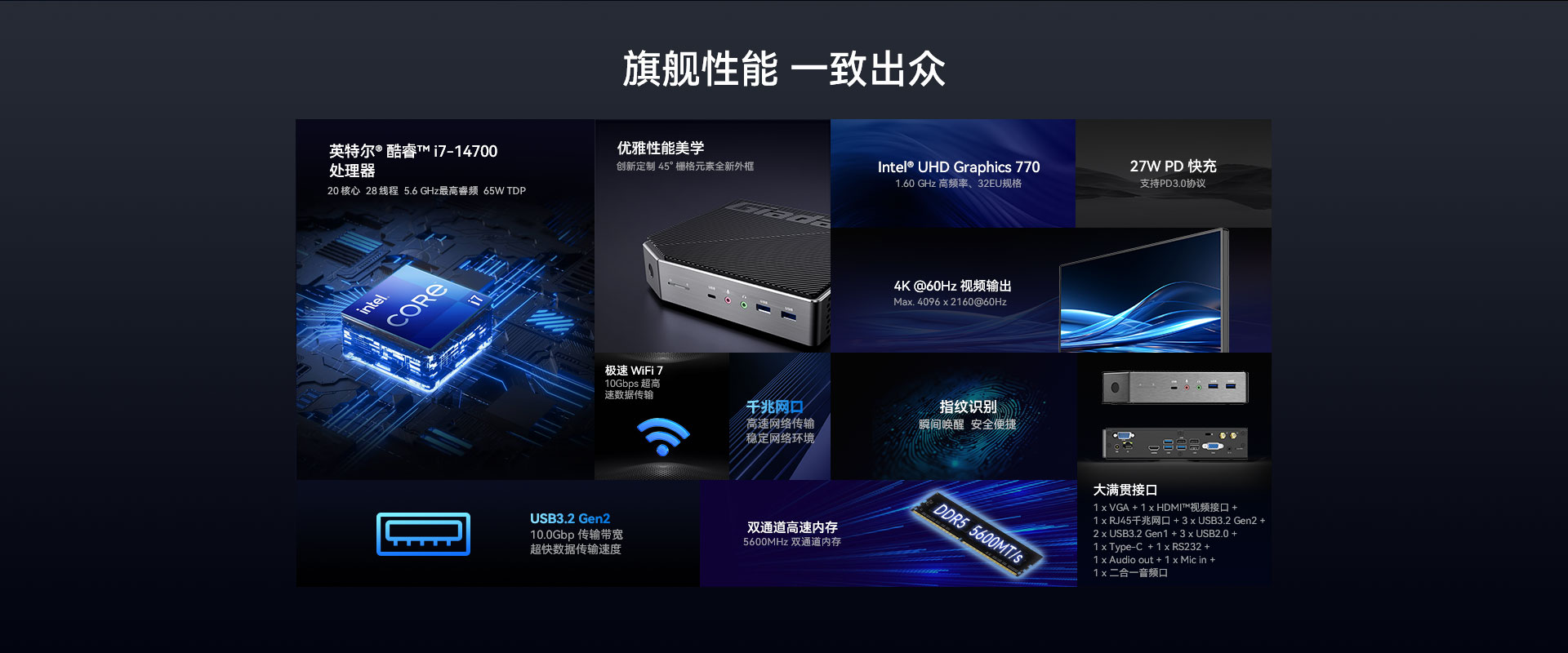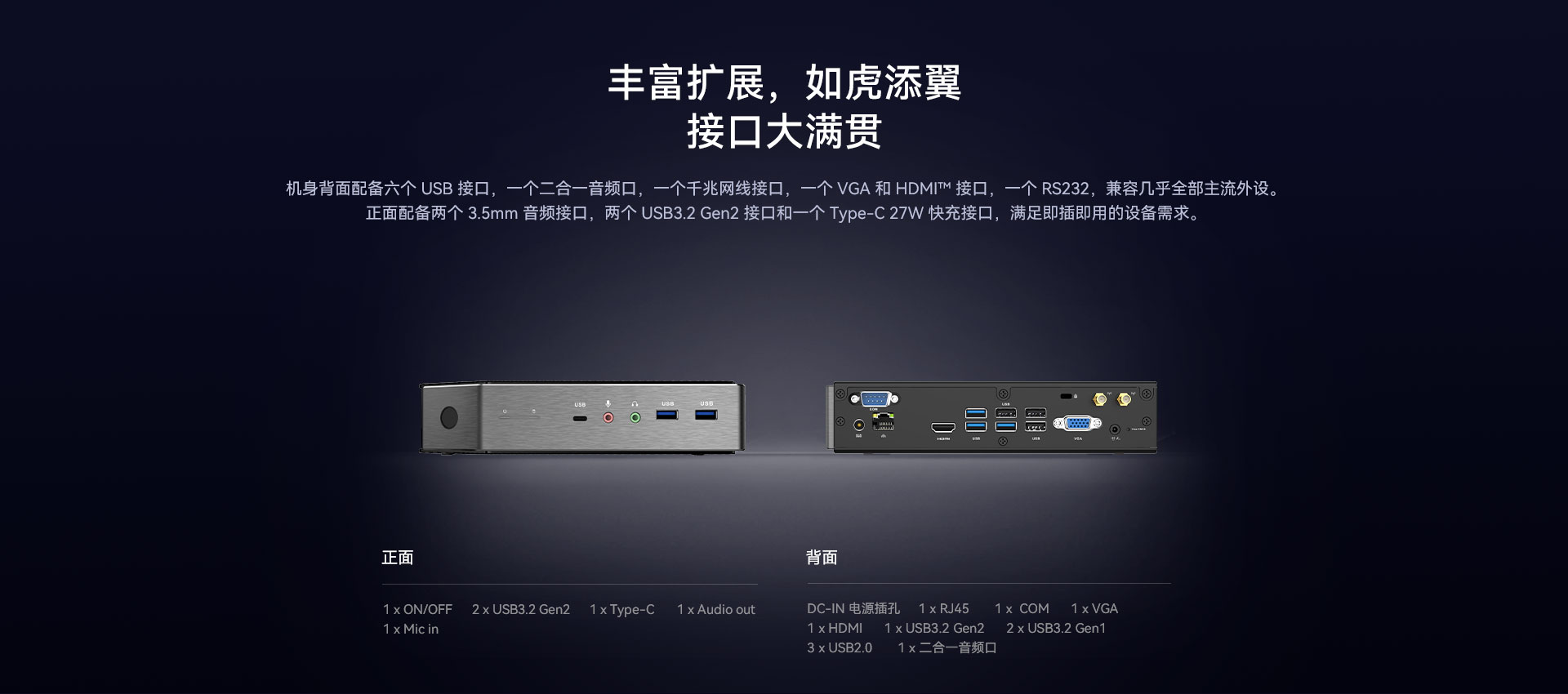 1 x HDMI,1 x VGA,最高支持8K视频输出