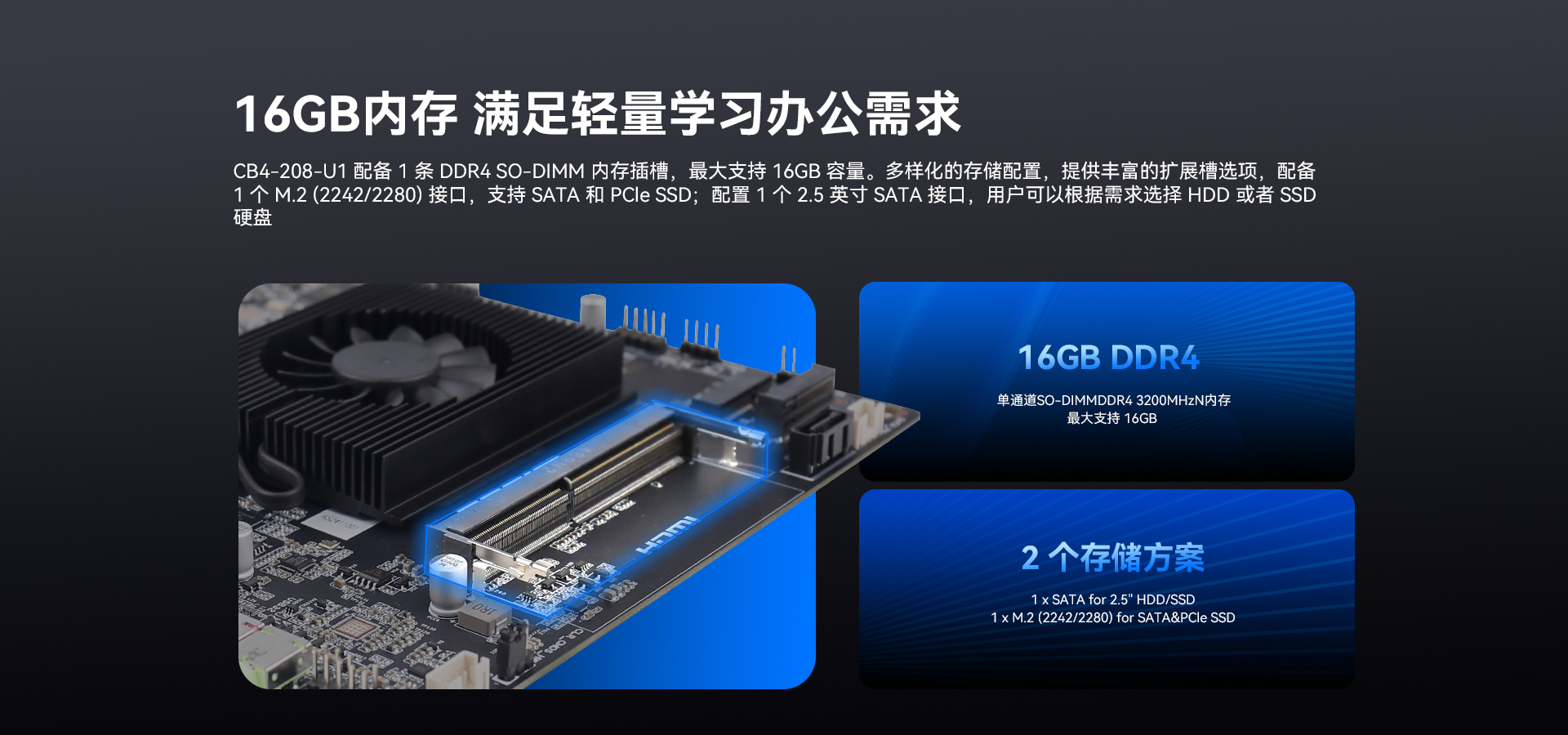 存储 | 类型 | 1xM.2(2280)for(pcie3.0x1&sata)SSD 1xSATA for HDD/SSD |