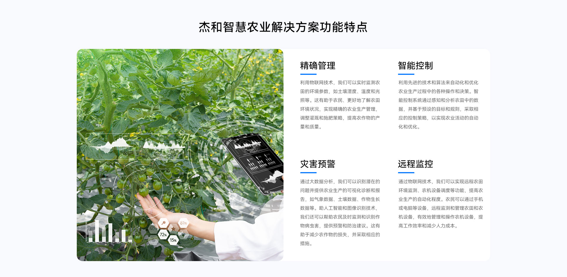 业生产全方位、多维度的监测和管理,帮助农民提高生产效率和产量,促进